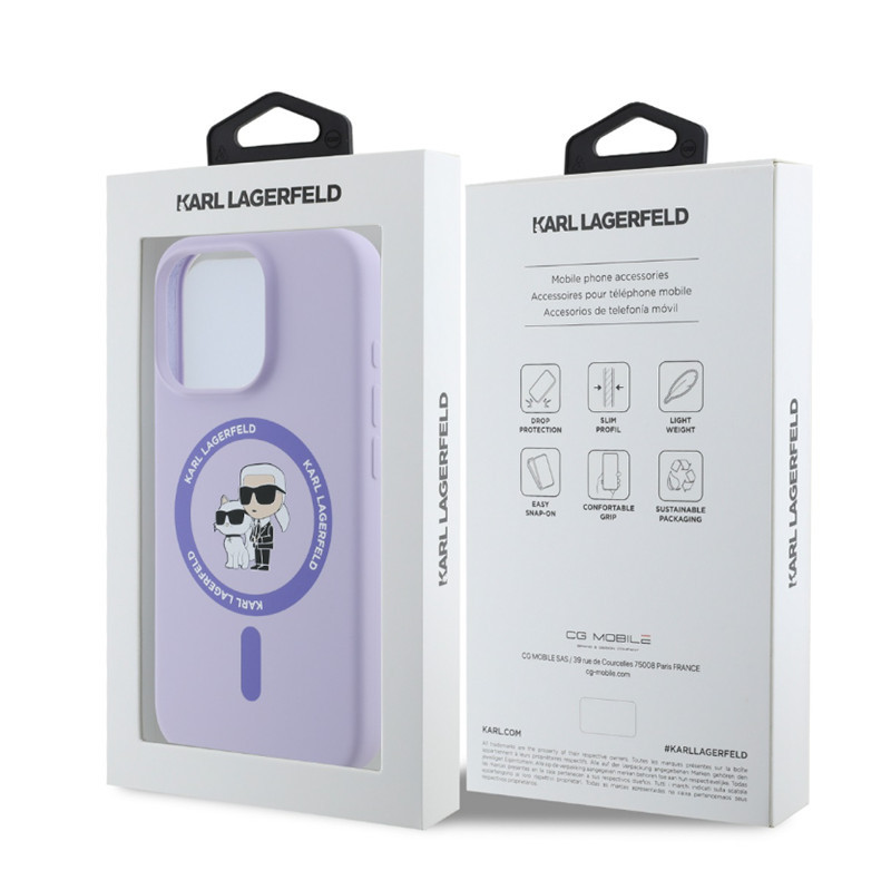 Karl Lagerfeld Liquid Silicone Karl and Choupette Apple iPhone 17 Pro Max (6.9) MagSafe hátlapvédő tok lila (KLHMP17XSCMKCRHU)